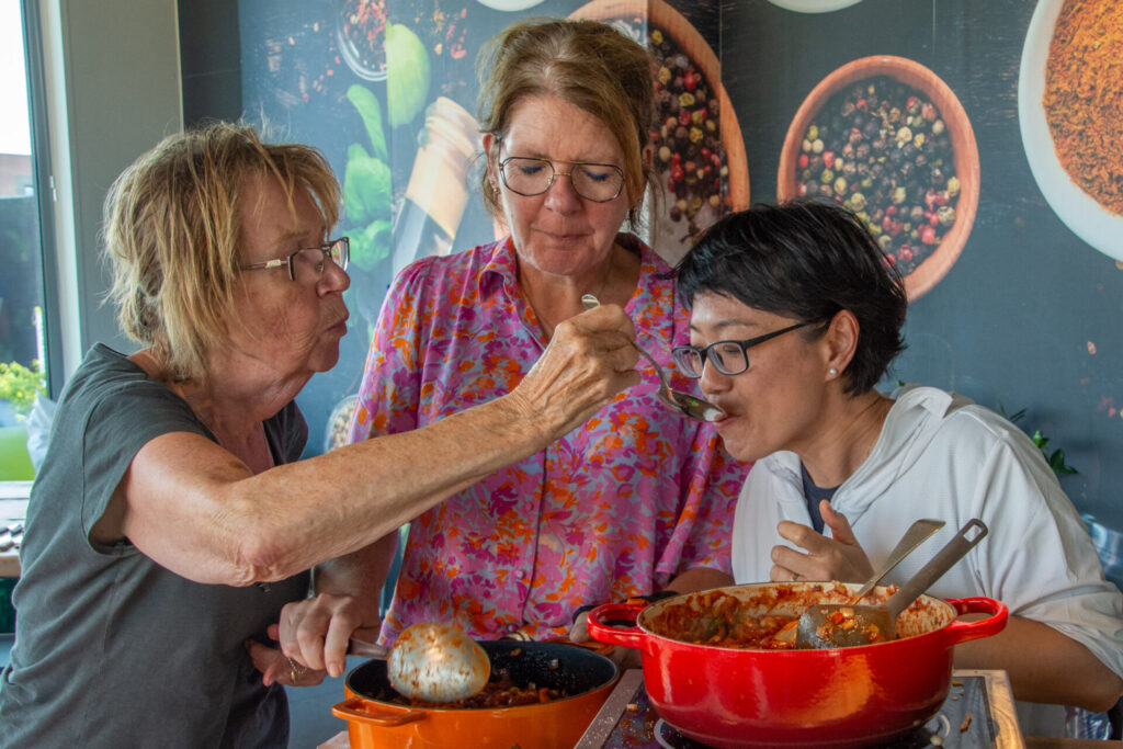 Samen eten smaakt beter. Daarom maken we van Het Eetatelier altijd een bijzondere ervaring: samen koken, proeven en verbinden. Niet alleen met elkaar, maar ook met de verhalen die schuilgaan achter ons eten. Iedereen brengt een eigen gerecht mee, we inspireren elkaar met nieuwe smaken en wisselen recepten en tips uit die daarna weer verder rondgaan in de buurt.